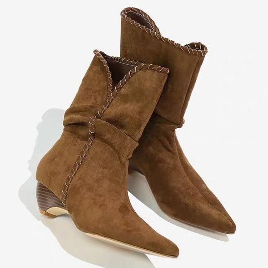 Autumn Suede Female Low Heel Retro Western Cowboy Short Boots