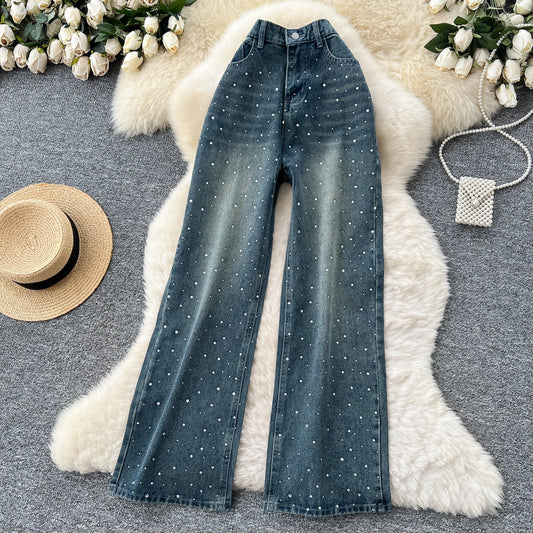 American Retro Diamonds High Waist Streetwear Loose Denim Jeans
