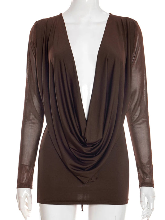 Backless Y2K Swing Collar Patchwork Mesh Full Sleeve Bodycon