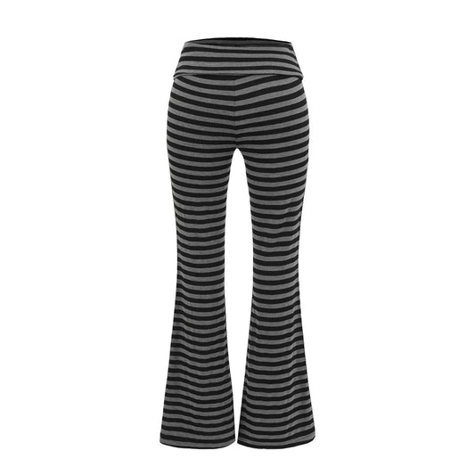 American Style High Waist Slim Fit Casual Stripe Pattern Elastic Loose Long Trousers
