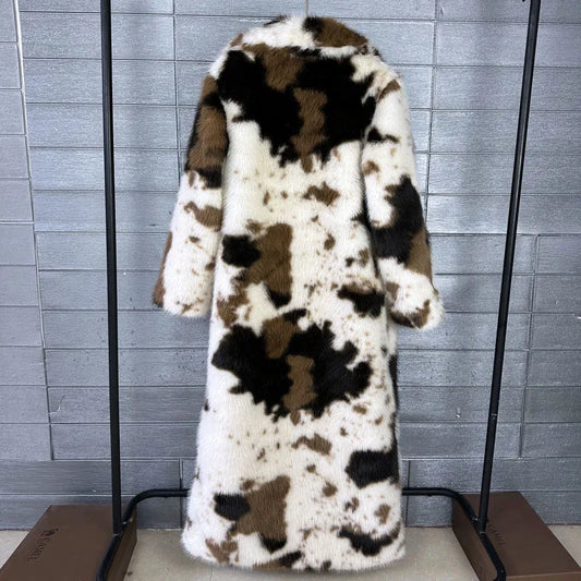 High Quality Thick Leopard Print Faux Fox Fur Coat