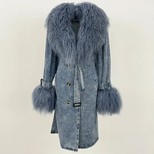 Mongolian Fur Collar Denim Detachable Collar Fur Overcoats