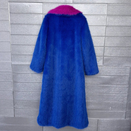 Imitation Colourful Long Faux Fur Suit Collar Long Sleeve Trench Coat