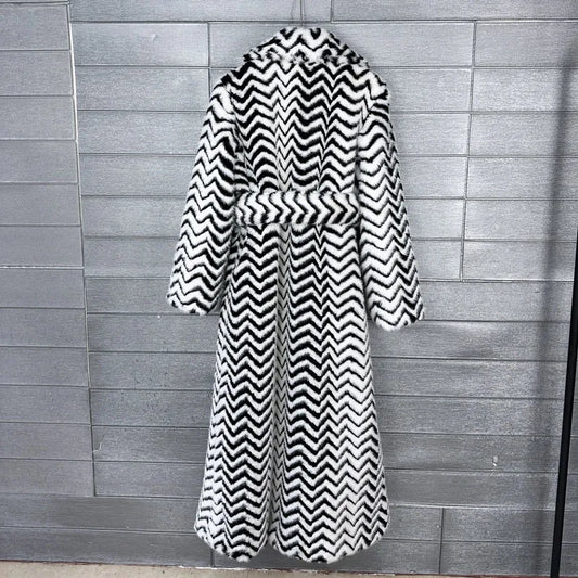 High Quality Autumn Winter Wave Striped Faux Fur Coat