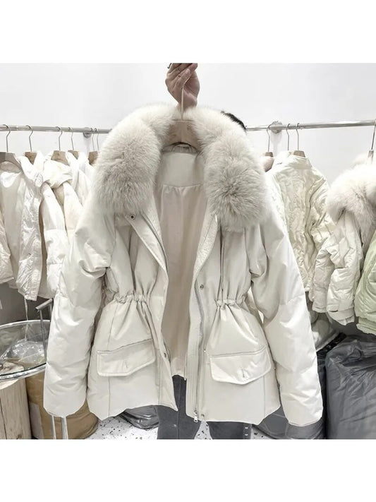 Real Fox Fur Collar Puffer Parkas Overcoats High-Quality Warm Loose Coat
