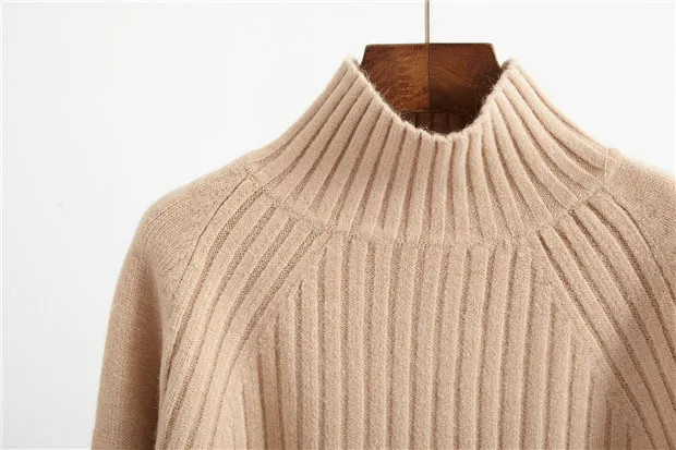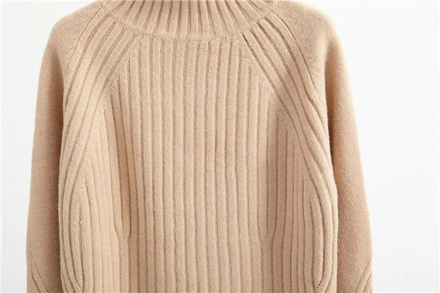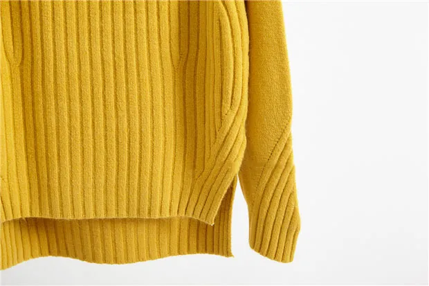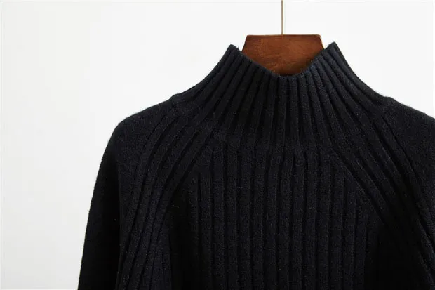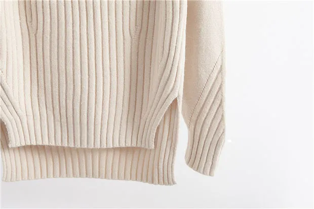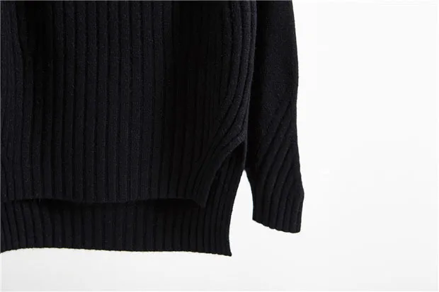 Solid Mock Neck Loose Pullover Sweaters Knit Split Stripe Jumpers